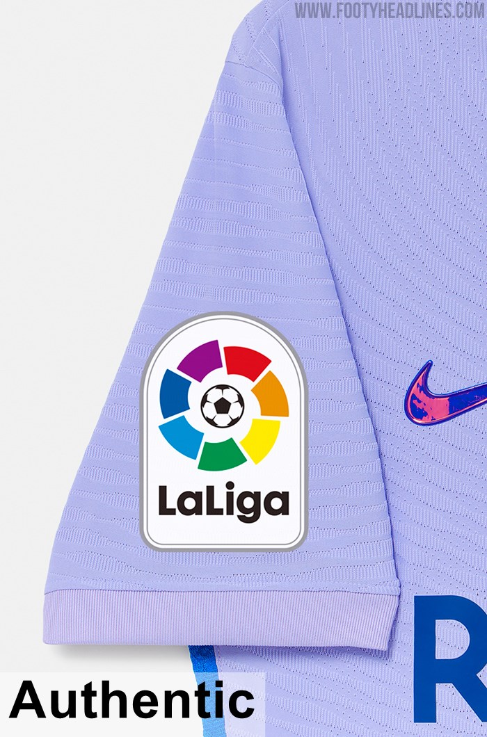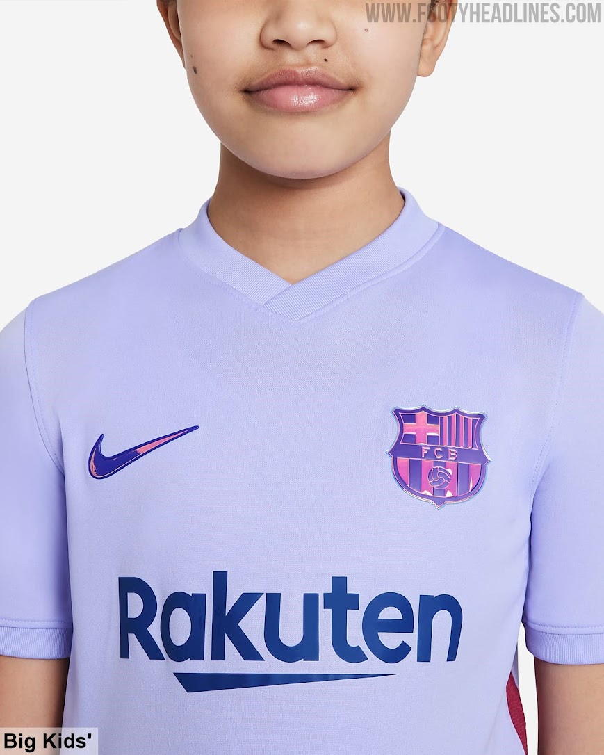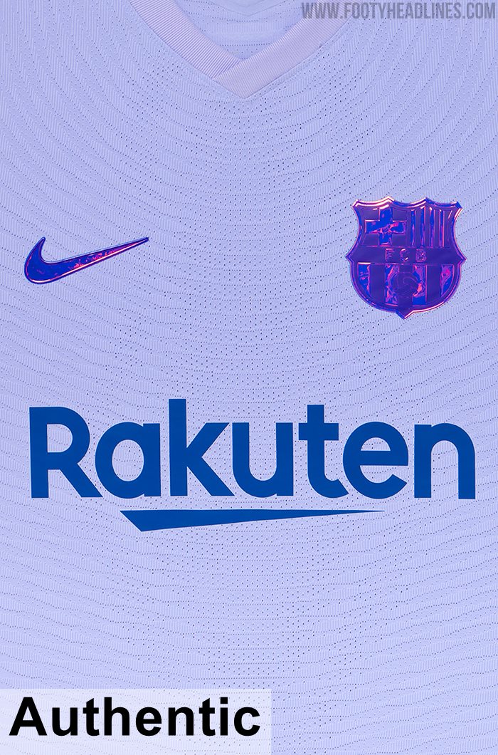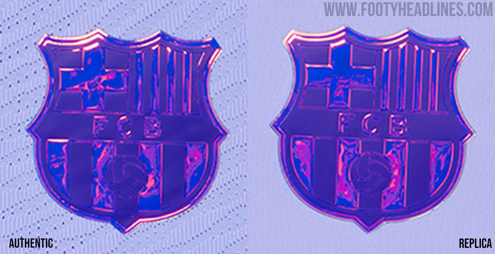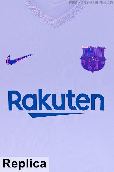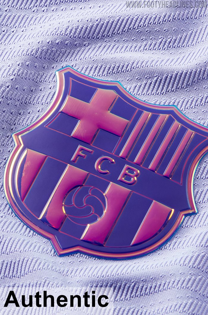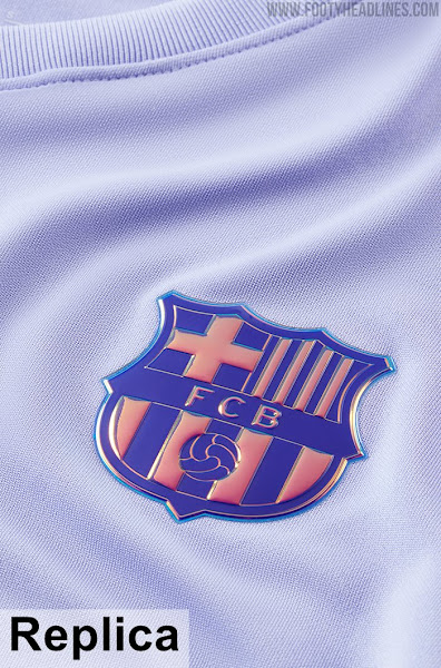 Im Gegensatz zu allen anderen Nike Replica und Authentic Trikots für 2021-22, haben die Nike FC Barcelona 2021-22 Auswärtstrikots den gleichen Swoosh und Wappen. Das "monochromatische Wappen reflektiert je nach Blickwinkel unterschiedliche Farben".