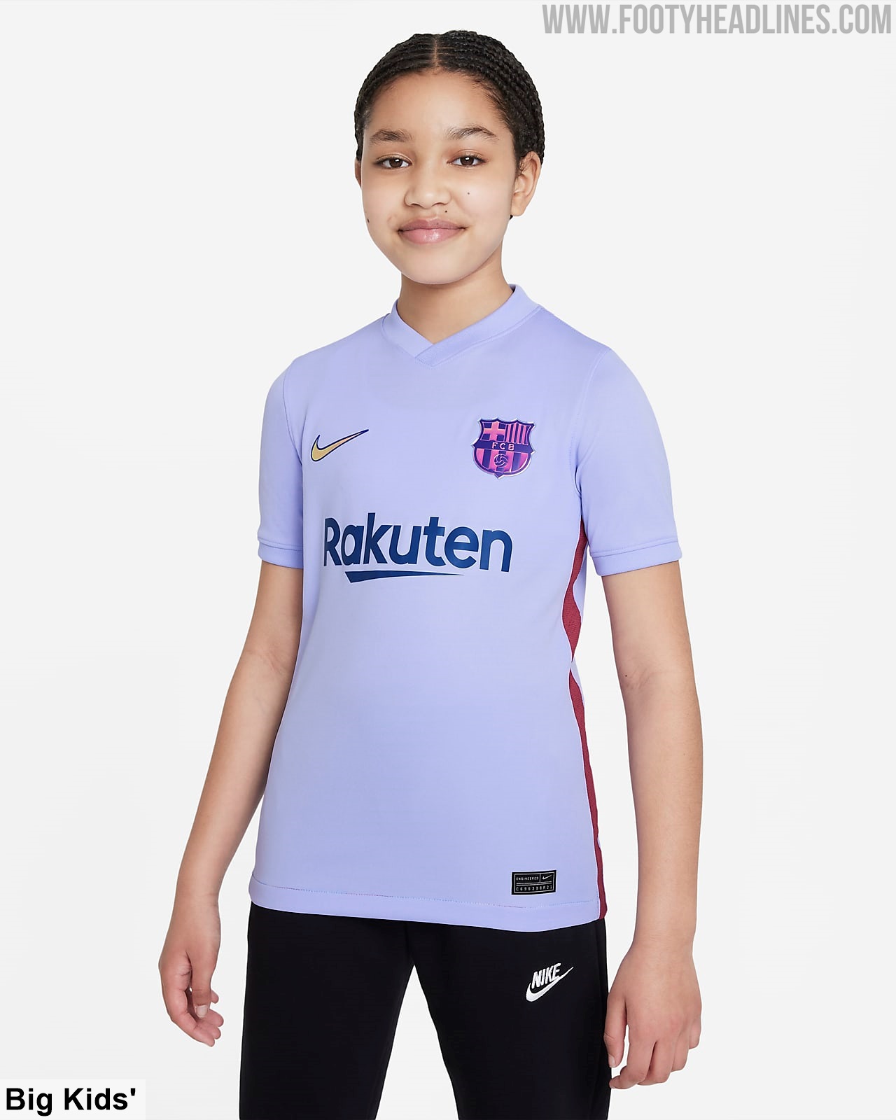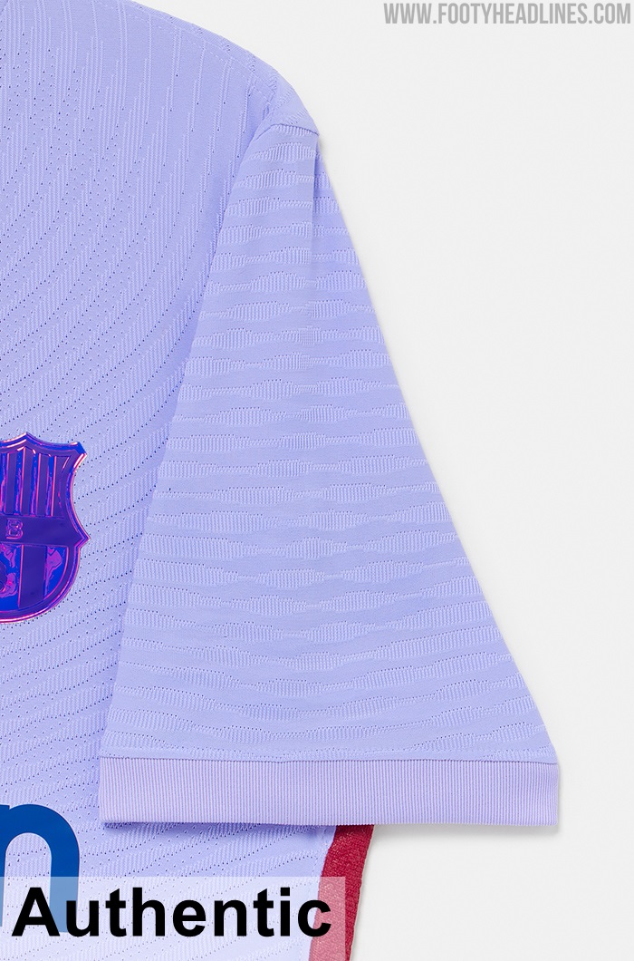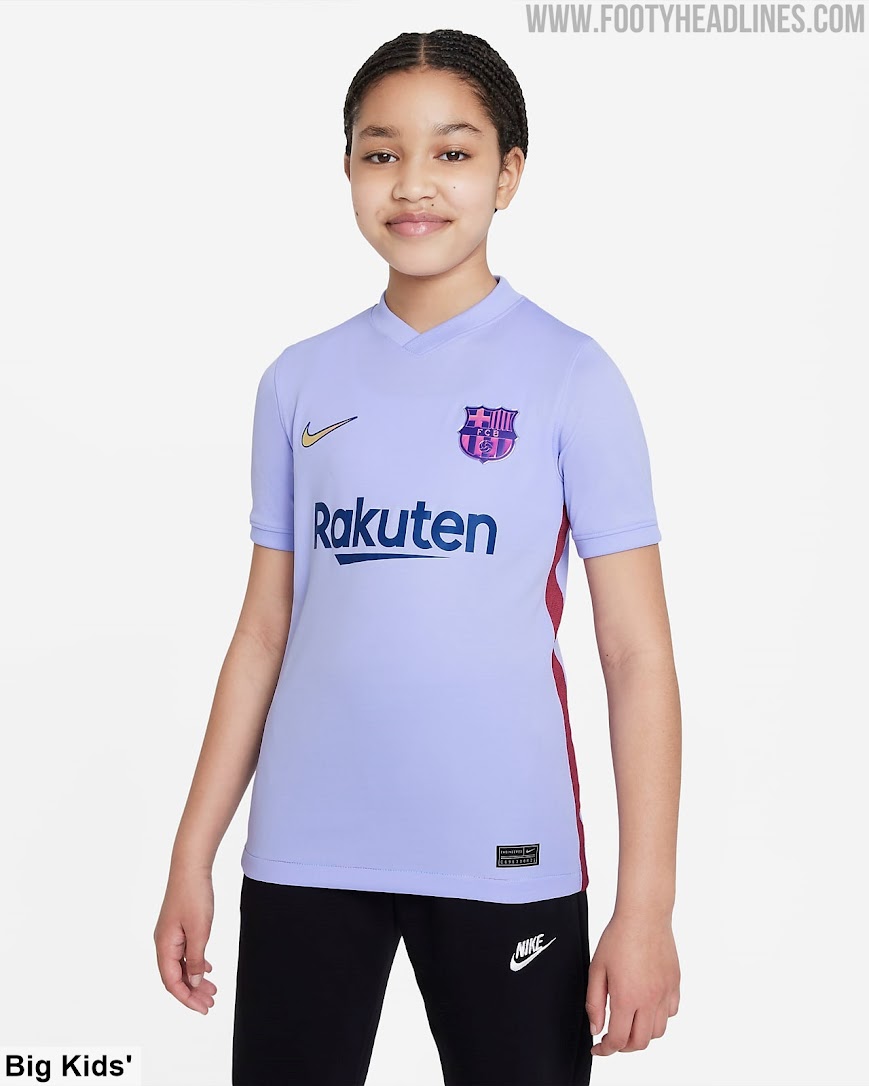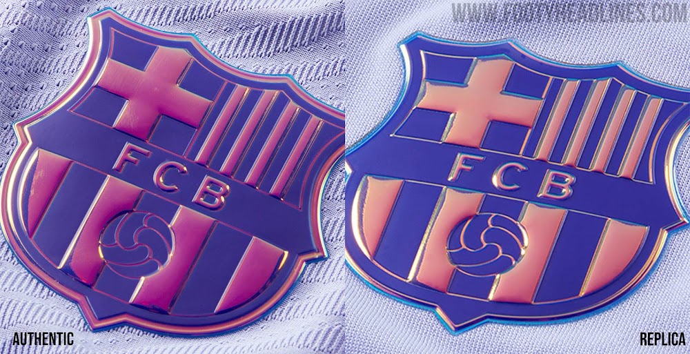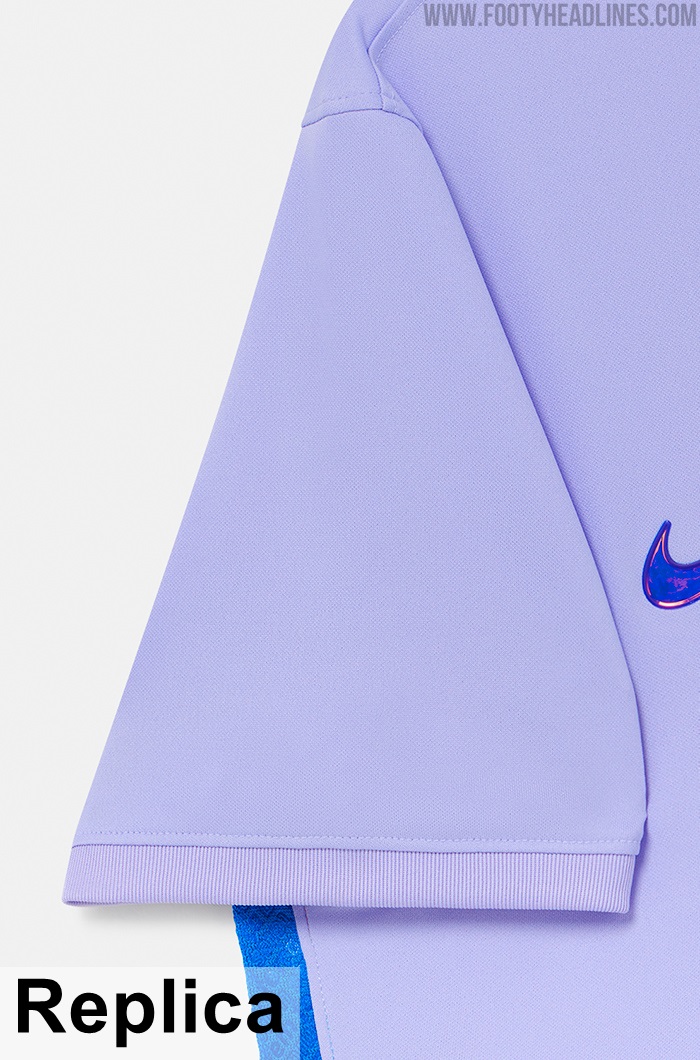 Im Gegensatz zu allen anderen Nike Replica und Authentic Trikots für 2021-22, haben die Nike FC Barcelona 2021-22 Auswärtstrikots den gleichen Swoosh und Wappen. Das "monochromatische Wappen reflektiert je nach Blickwinkel unterschiedliche Farben".