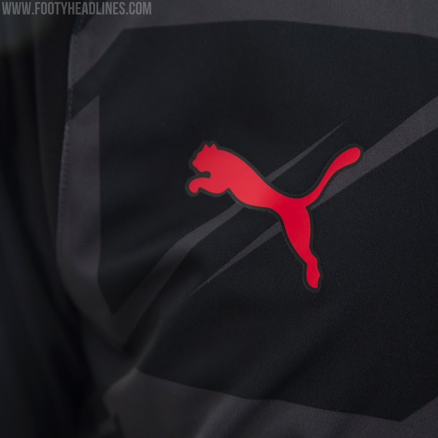 Das Puma West Bromwich Albion 2021-22 Auswärtstrikot ist überwiegend schwarz mit roten Details und einem dezenten Karomuster auf der Vorderseite.