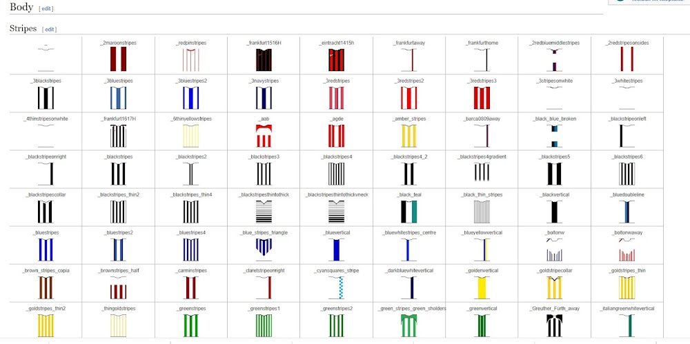 Die Wikipedia-Fußballtrikotvorlage besteht aus einem Trikot, Hosen und Stutzen. Es gibt eine Anleitung, wie man ein Fußballtrikot mit der Template nachbauen kann und hunderte von verschiedenen Basisdesigns für Dinge wie Streifen, Logos und Muster.