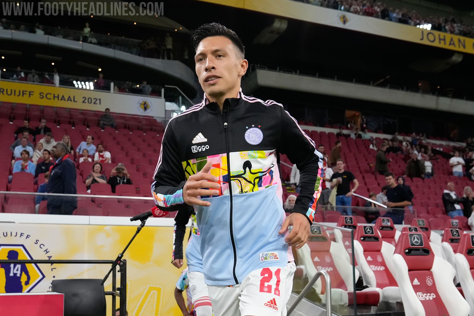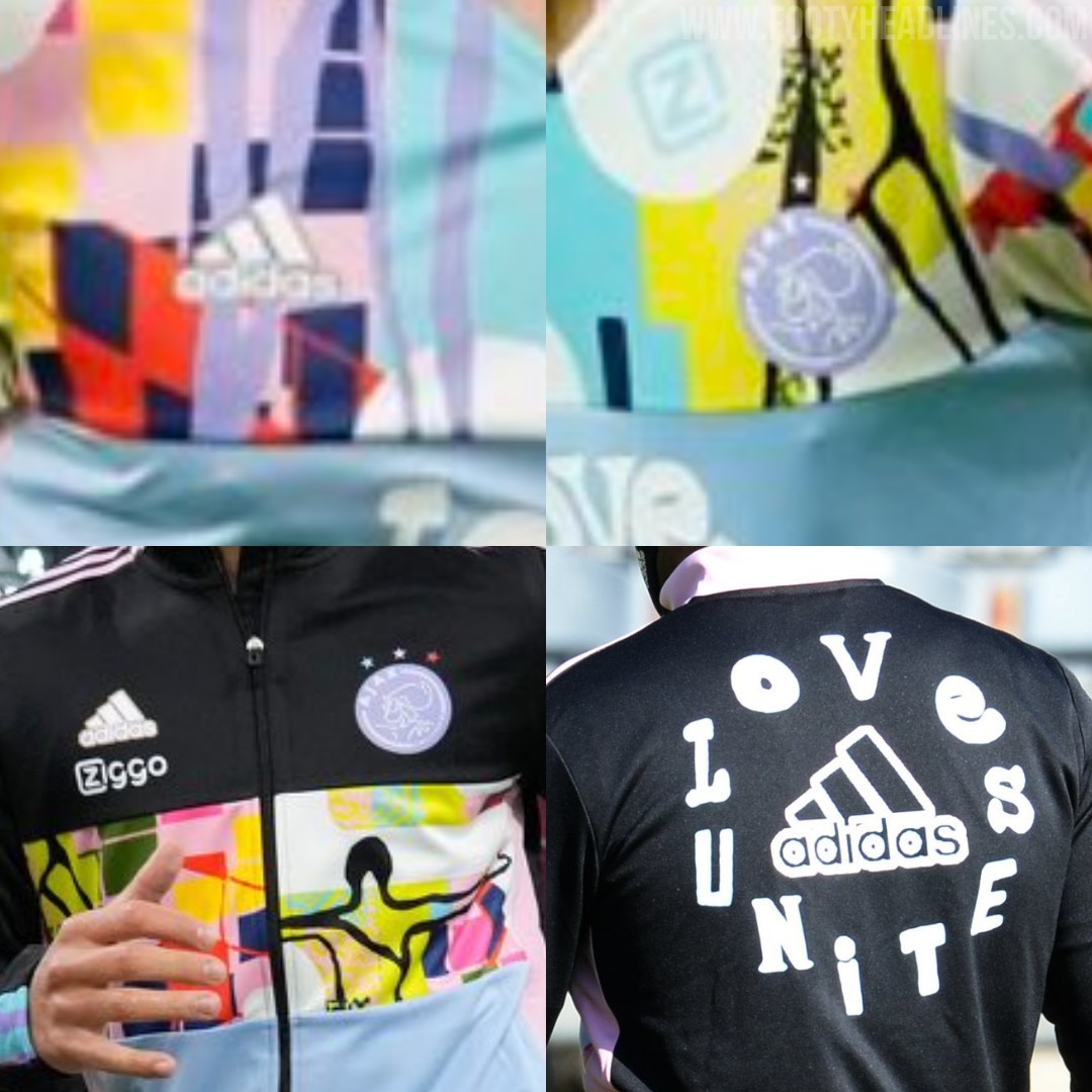 Ajax wärmte sich in einer speziellen 'Love Unites' Adidas Tiro Track Jacket auf.