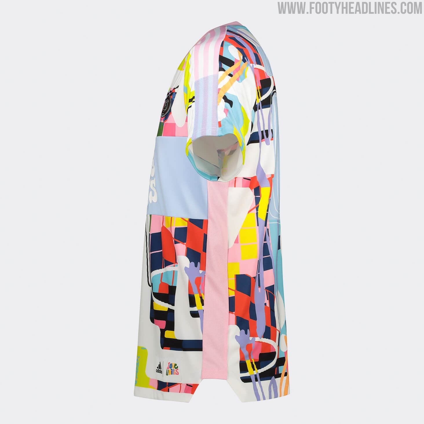 Basierend auf dem Adidas 'Love Unites' Tiro Trikot, hat das Adidas AFX Ajax 'Amsterdam Pride' Trikot ein farbenfrohes Design mit einer DIY Ästhetik.