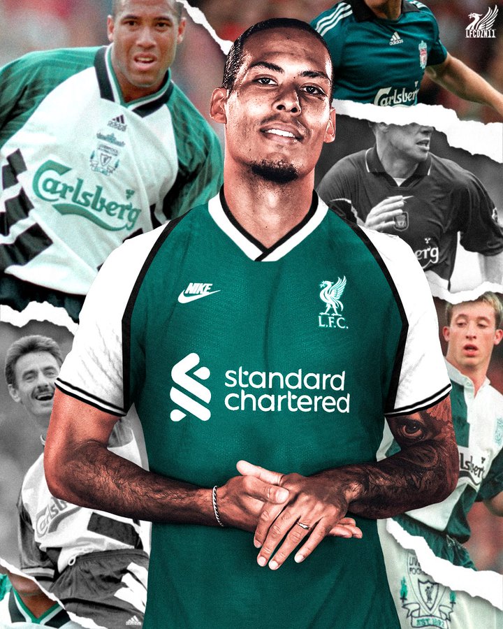 Das neue Liverpool FC 2021-2022 Third Concept Fußballtrikot ist inspiriert von den grünen Liverpool Auswärtstrikots der Vergangenheit und dem 194-95 Auswärtstrikot im Besonderen.