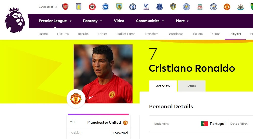 Update: Die offizielle Website der Premier League listet Cristiano Ronaldo als Nr. 7. Allerdings hat die Liga auch Cavani als Nr. 7, die Verwirrung ist also perfekt. Die Premier League hat noch nie einem Spieler erlaubt, während einer Saison die Rückennummer zu wechseln.