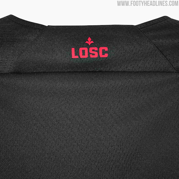 Das New Balance Lille LOSC 21 -22 dritte Fußballtrikot bringt ein maßgeschneidertes Design in schwarz / dunkelgrau mit einer aufwendigen Grafik auf der Vorderseite sowie einem einfarbigen, leuchtend roten Vereinsabzeichen auf der linken Brust. Die Grafik auf der Vorderseite ist inspiriert von der legendären Zitadelle der Heimatstadt des Vereins, Lille.