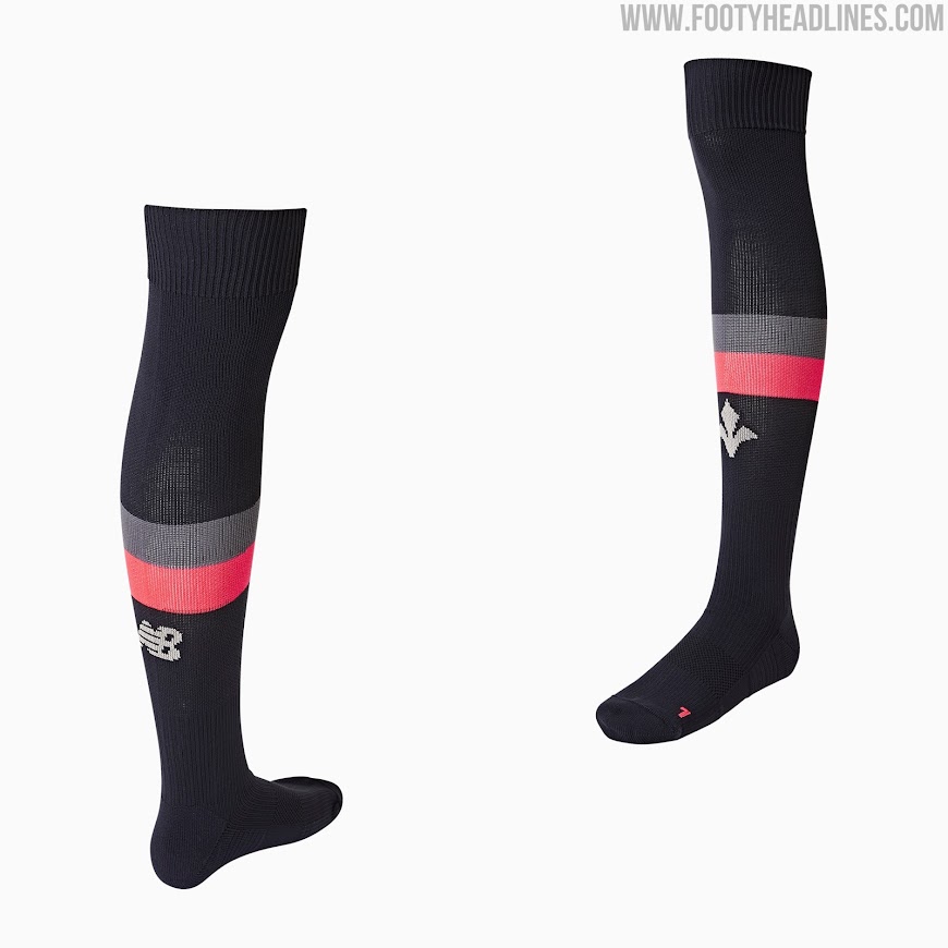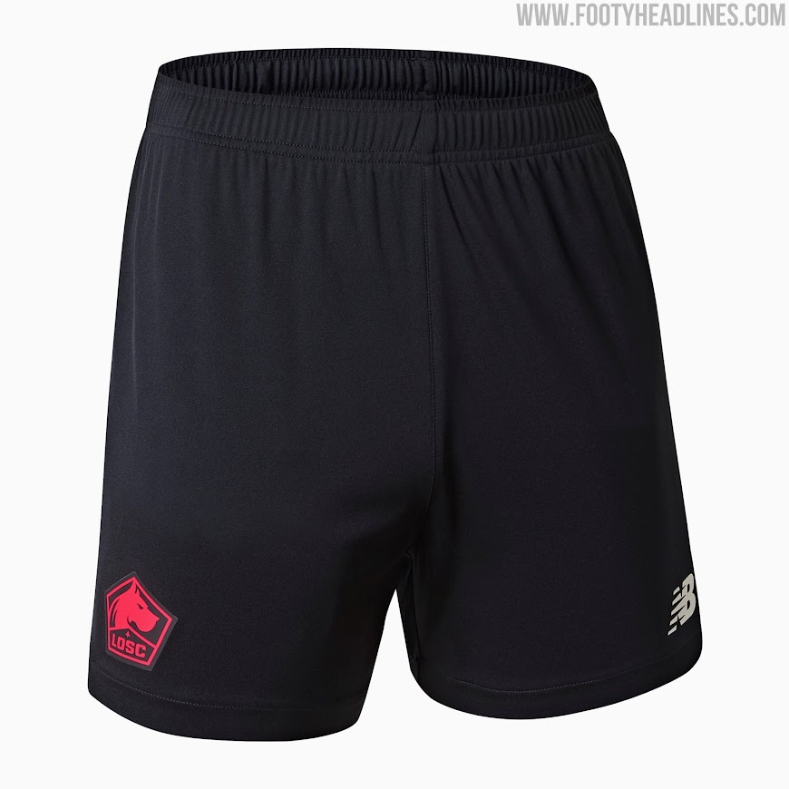 Schwarze Hosen und Stutzen runden den Look des neuen Lille 2021-2022 dritten Trikots von New Balance ab.