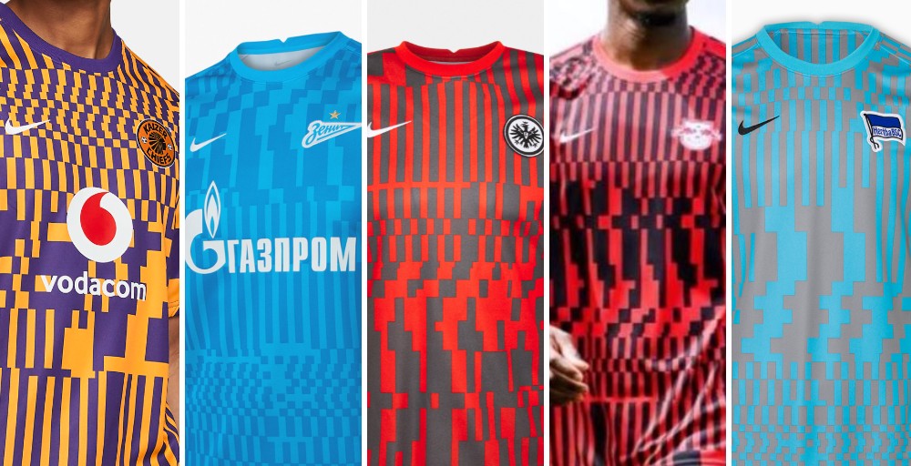 Nike hat ein einzigartiges Set von Pre-Match-Shirts für die "B-Tier"-Teams Eintracht Frankfurt, Hertha BSC, Kaizer Chiefs RB Leipzig und Zenit auf den Markt gebracht.