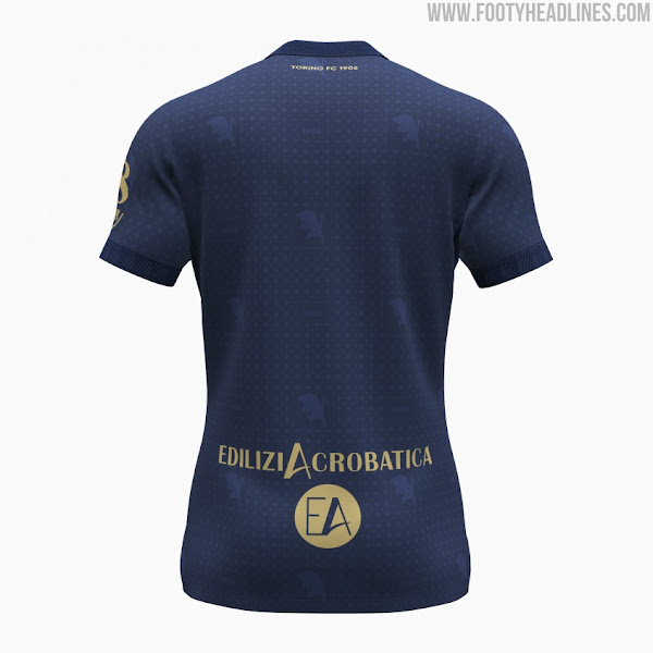 Das Joma Torino 2021-2022 drittes Fußballtrikot kombiniert einen marineblauen Grundton mit gold-metallischen Logos sowie einem dezenten Jacquard, das den zügellosen Stier zusammen mit dem Gründungsjahr des Vereins zeigt.