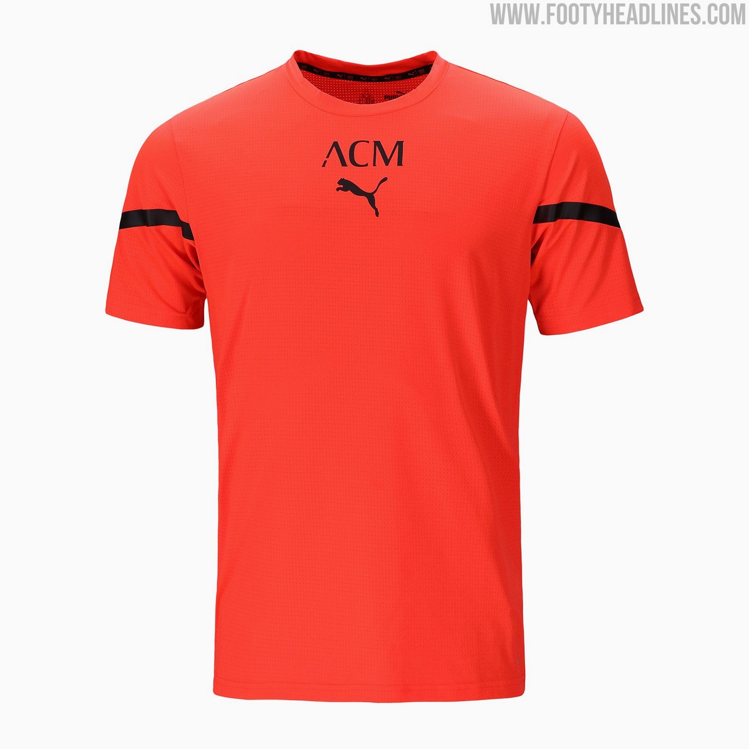 Anstelle des Vereinslogos zeigt das Puma Milan 2021-2022 Champions League Pre-Match Fußballtrikot nur die Buchstaben ACM in der vorderen Mitte über dem Puma Wappen.