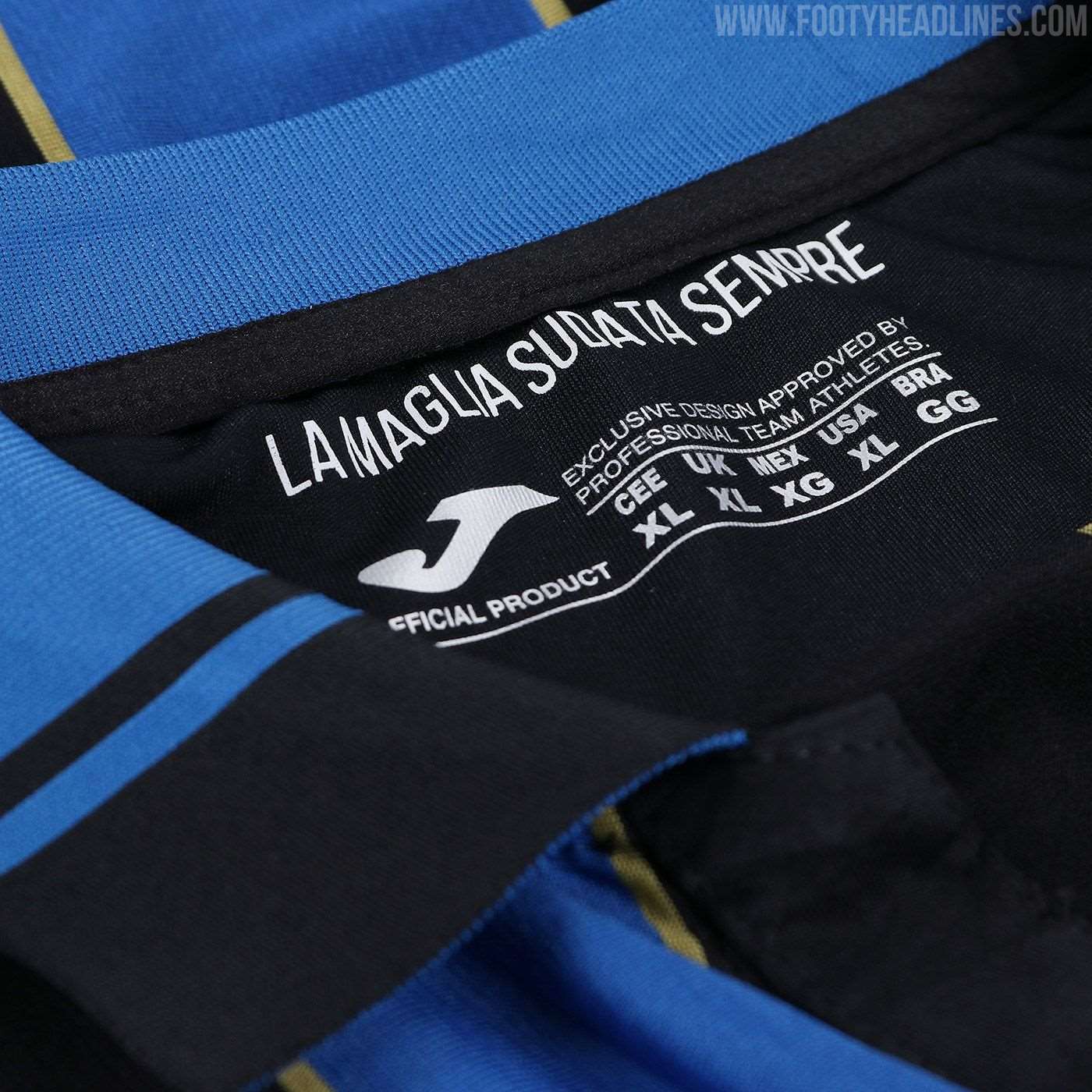 Das Joma Atalanta Bergamasca Calcio 2021-22 Champions League Fußballtrikot basiert auf dem regulären Trikot, hat aber das Vereinswappen auf der linken Brust statt in der Mitte. Das liegt daran, dass die UEFA keine zwei Sponsoren auf der Vorderseite zulässt - normalerweise befindet sich an dieser Stelle ein Sponsorenlogo.