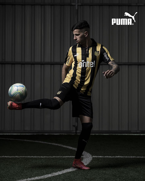 Das alte Puma-Logo befindet sich auf der rechten Brustseite, während das Wappen von Peñarol in seiner regulären Form auf der gegenüberliegenden Seite zu sehen ist. Ein weiteres Puma-Logo, das aktuelle, befindet sich auf jedem Ärmel.