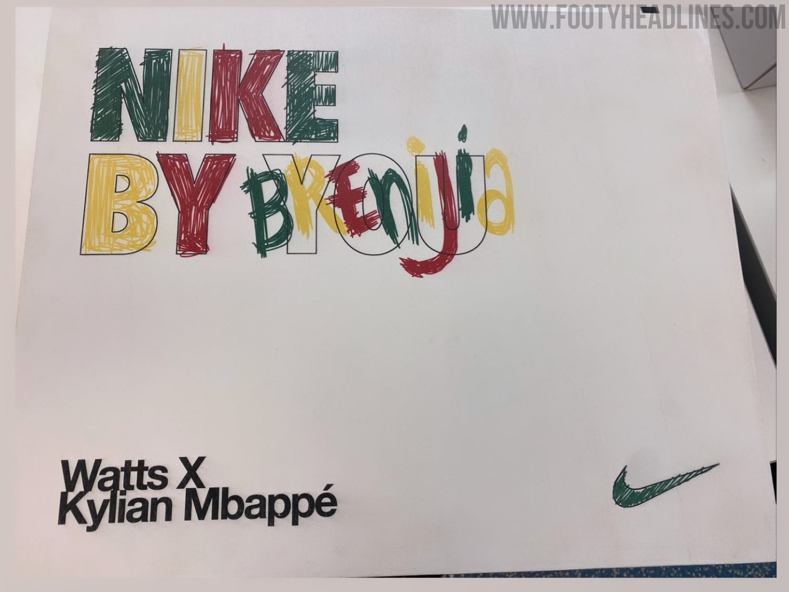 Die von Mbappé getragenen Schuhe haben ein gewagtes Design in Grün, Rot und Gold, inspiriert von einem Konzept der jungen Amerikanerin Brenijia Barnes. Im Gespräch mit Footpack erklärte sie, dass sie "stolz und glücklich sei, Mbappés Schuhe entworfen zu haben". Auch wenn die von Mbappé getragenen Schuhe etwas anders sind und nur die Standardoptionen aus "Nike By You", dem Nachfolger des beliebten Nike iD Programms, nutzen. All dies wurde dank Street Soccer USA möglich, einer gemeinnützigen Organisation, die gegen Armut kämpft und das Ziel hat, Gemeinschaften durch Fußball zu stärken.