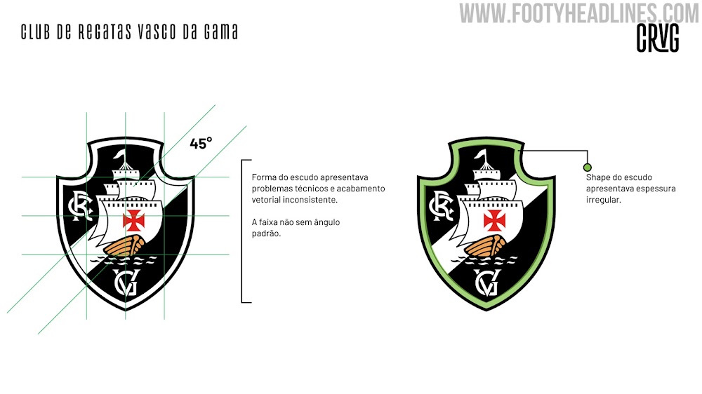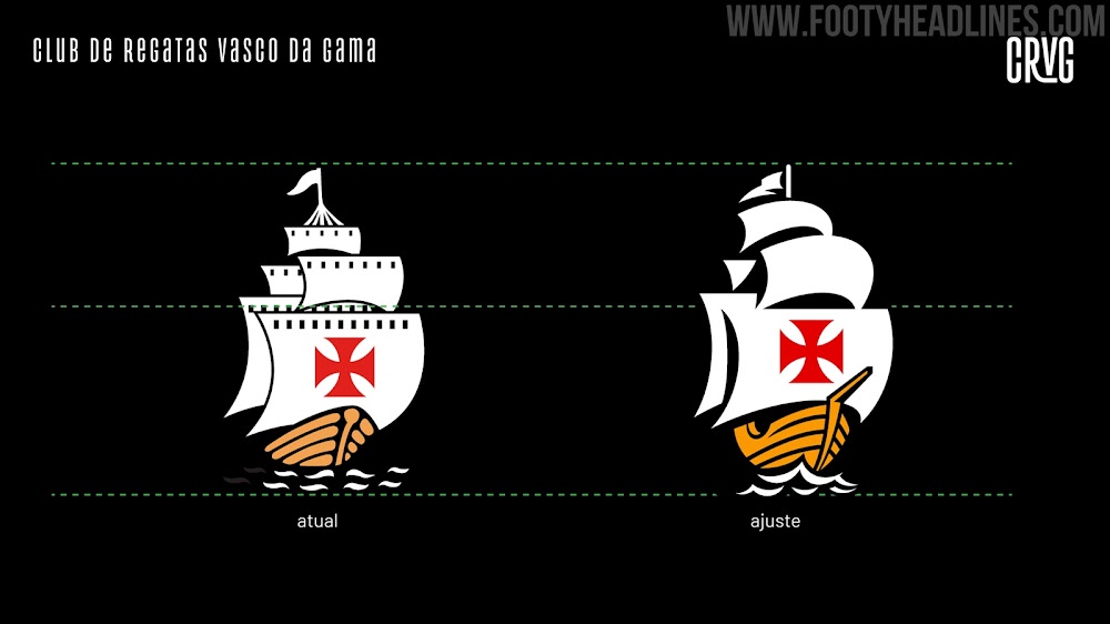 Vergleiche das alte und das neue Design des CR Vasco da Gama Logos unten.