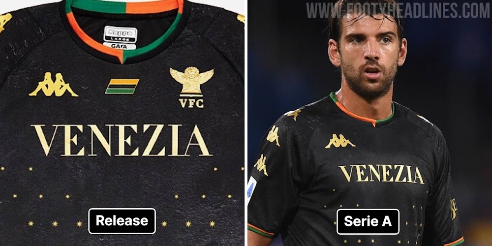 Normalerweise erlaubt die Serie A nur "ein Vereinslogo" auf einem Fußballtrikot - der Venezia-Schriftzug auf der Vorderseite wurde als Vereinslogo angesehen. Jetzt scheint die Serie A ihre Meinung geändert zu haben.