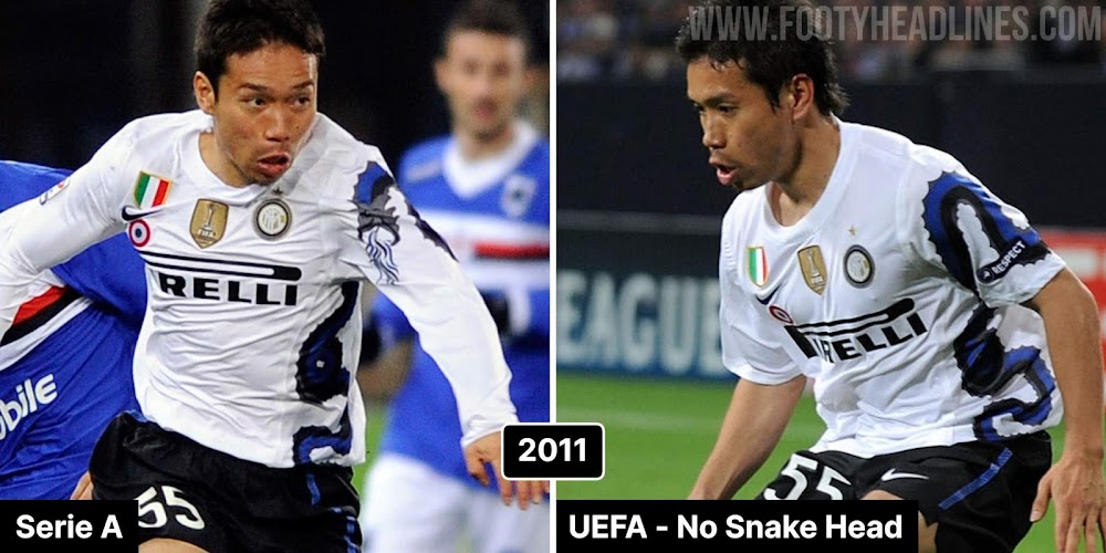 2011 durfte Inter das Schlangendesign in der Champions League beibehalten, musste aber den Kopf der Schlange entfernen, um den UEFA-Ausrüstungsbestimmungen zu entsprechen.