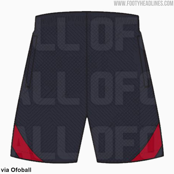 Die alternative Farbgebung ist hauptsächlich marineblau, kombiniert mit roten Logos und blau für den oberen Kragenbereich. Es scheinen die gleichen Farben zu sein, die auch für das Trikot 22-23 verwendet wurden.