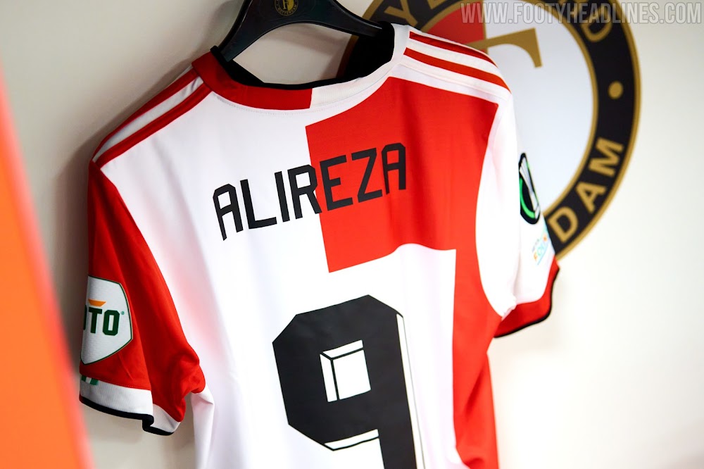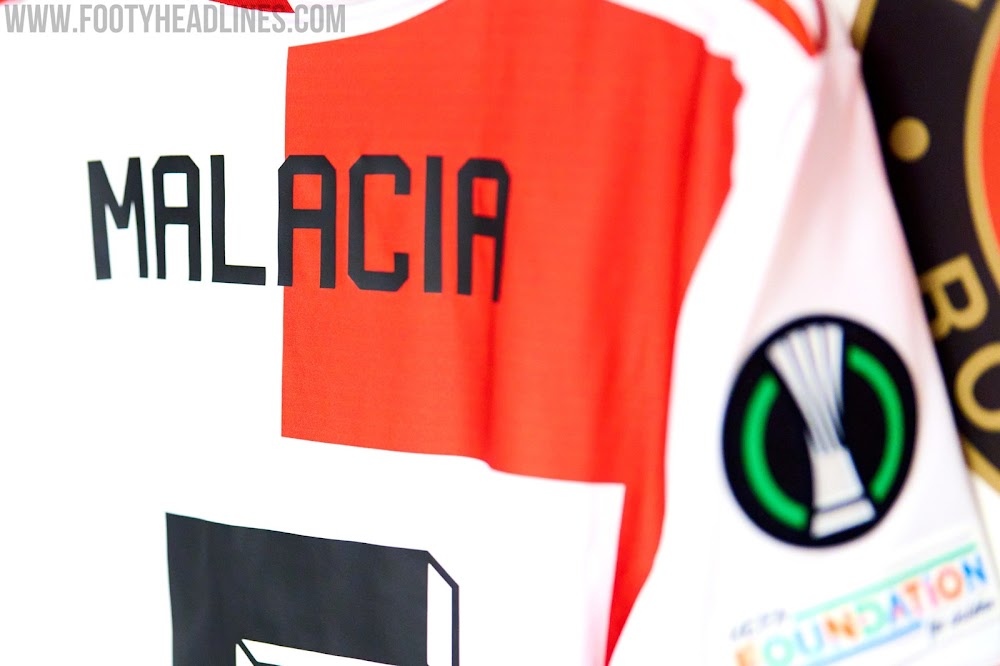 Während das reguläre Feyenoord-Trikot sowohl auf der Vorder- als auch auf der Rückseite ein halbiertes Design aufweist, hatte das in der UECL getragene Trikot einen großen weißen Raum für die Zahlen.