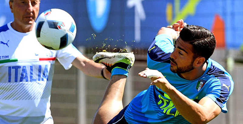 Näherer Blick | Graziano Pellès zwei unterschiedliche modifizierte EM 2016 Mercurial Fußballschuhe
