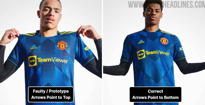 Fehlerhaft / Prototyp? Pfeile auf dem Manchester United 21-22 Trikot zeigen in verschiedene Richtungen