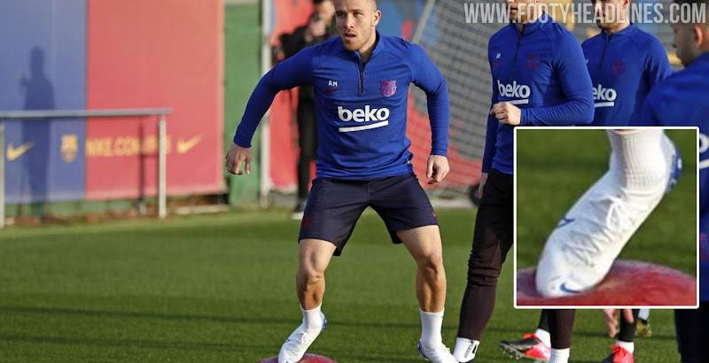 Barça-Mittelfeldspieler Arthur trainiert in maßgeschneiderten weiß-blauen Nike Mercurial Superfly iD Fußballschuhen