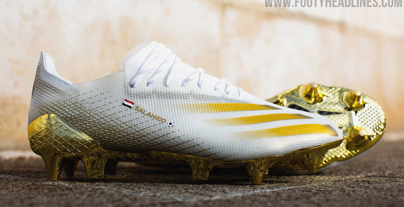 Besondere weiß-goldene Adidas X Ghosted "Mo Salah 100" Fußballschuhe veröffentlicht